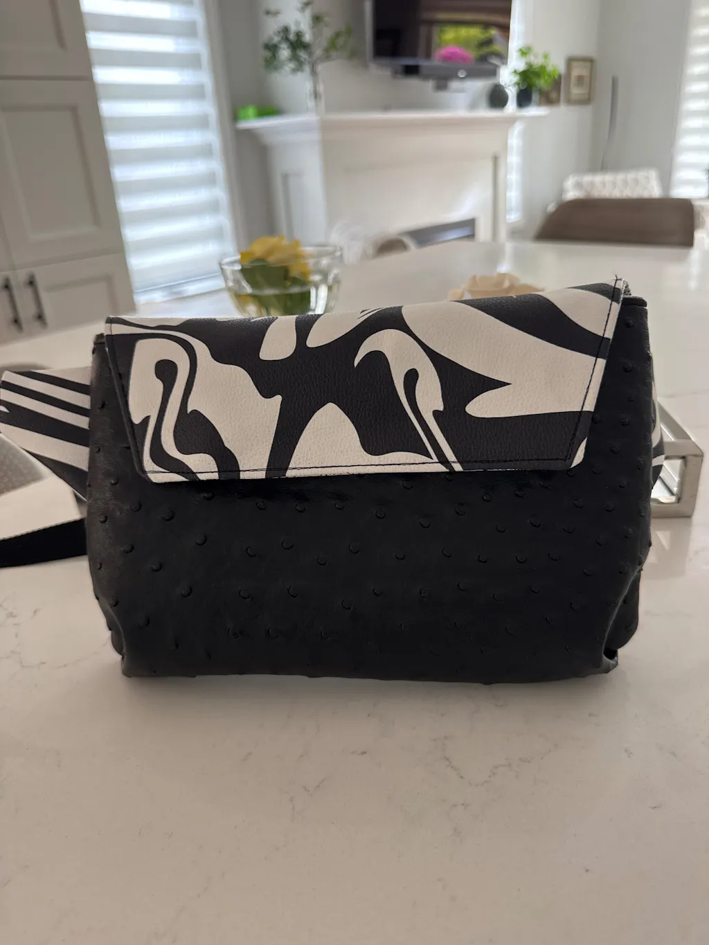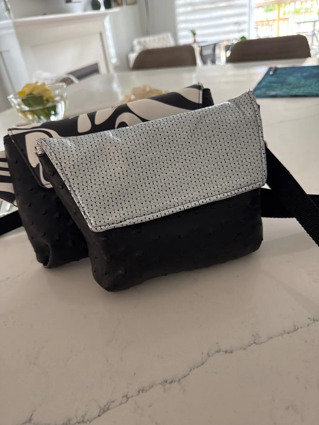 A belt bag that’s perfect for everyday use. Compact and easy to wear across the front or back of body. Great bag for travel and security. Multiple flap hardware closure options for maximum versatility. The back zippered pocket is perfect for your phone, with a spacious interior with zippered pocket inside!
