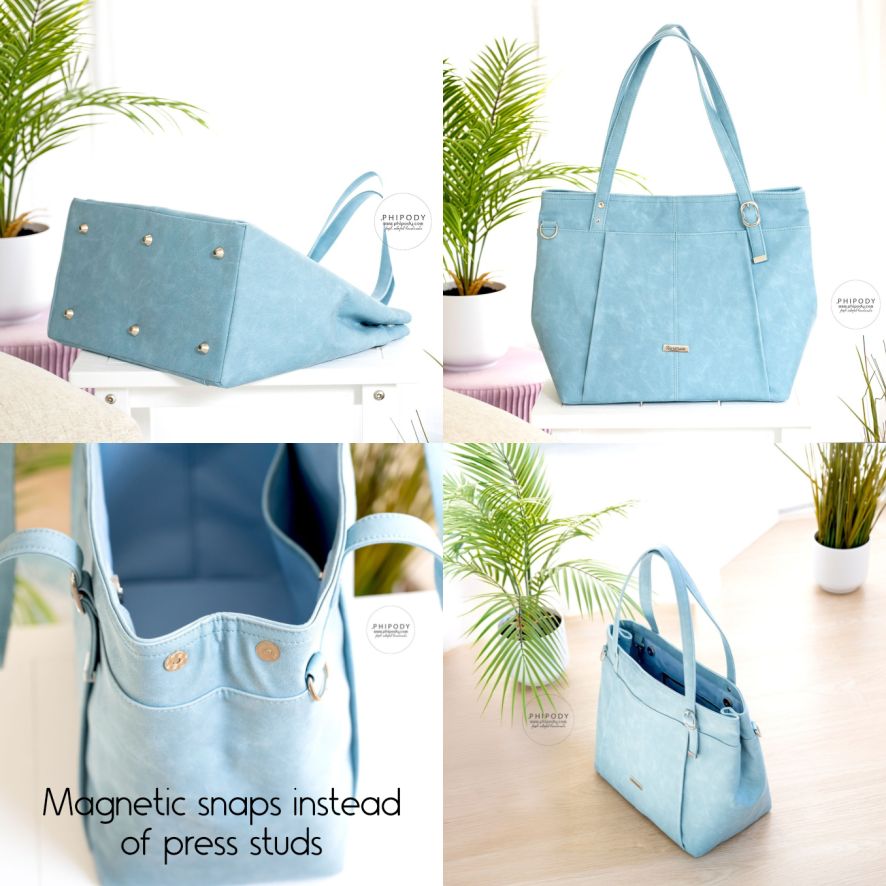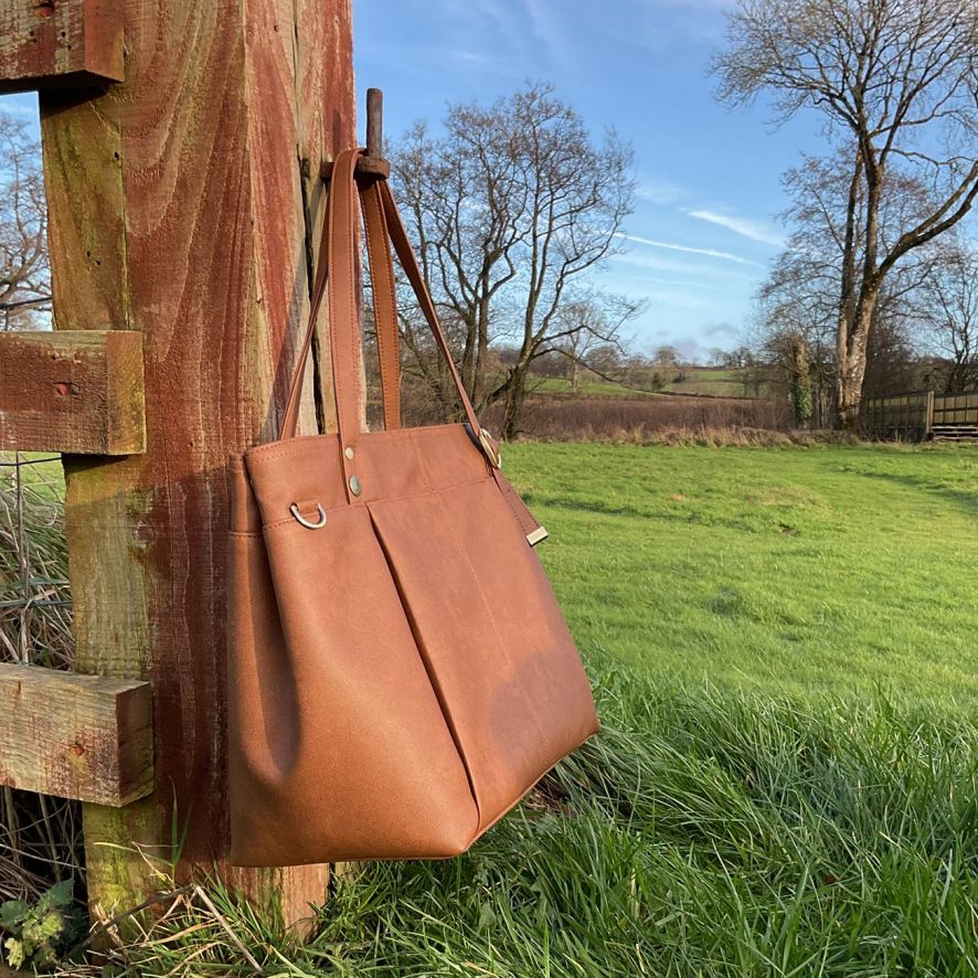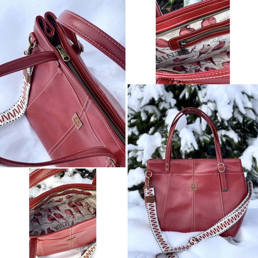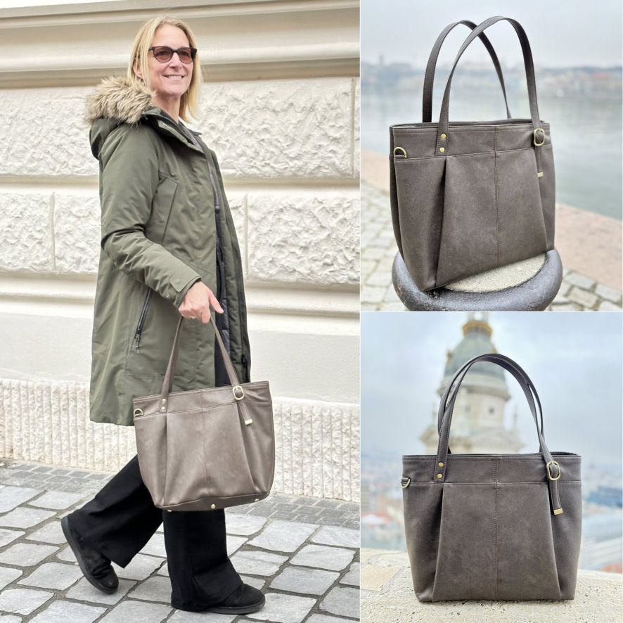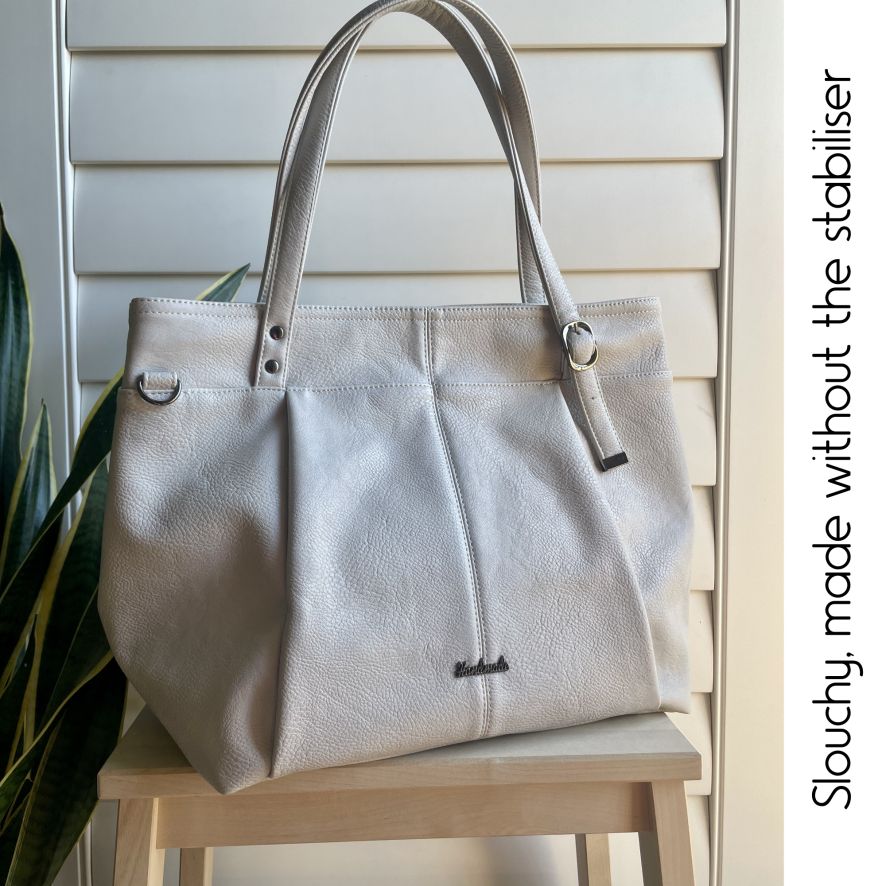 This bag looks luxurious when made using faux leather or cork. Canvas is also a great option, but if using canvas for the exterior, you’ll need to skip the optional zip pocket facing and slip pocket trim as these need to be made from cork, vinyl or leather due to having raw edges.