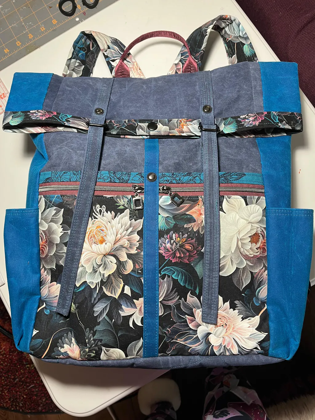 Cotton and canvas are great options for this bag. More experienced sewists may want to give cork or vinyl a try but be aware that there are some bulky seams where the zips and strap anchors meet. To keep bulk to a minimum, I recommend only using these thicker fabrics for the exterior main panels and base, and trimming interfacing out of the corner seams.