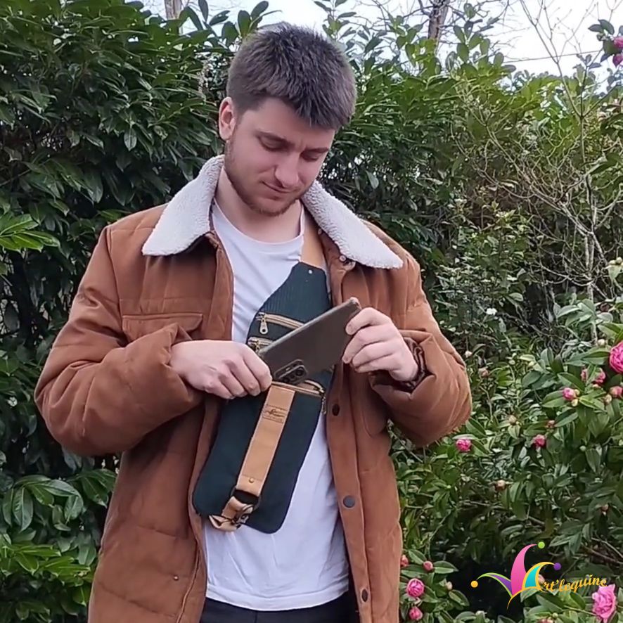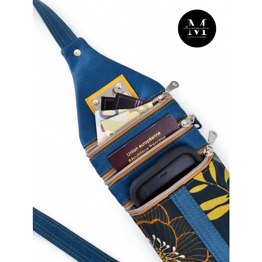 "This slim sling is designed to wear close to your body and carries just a few essentials. We designed it for travelling. Keep your phone, passport, and other essentials in the pockets and it fits easily under your coat, keeping things safe, out of sight, and easy to access! This sewing pattern is suitable for ambitious beginners and the bag is quick and easy to make."