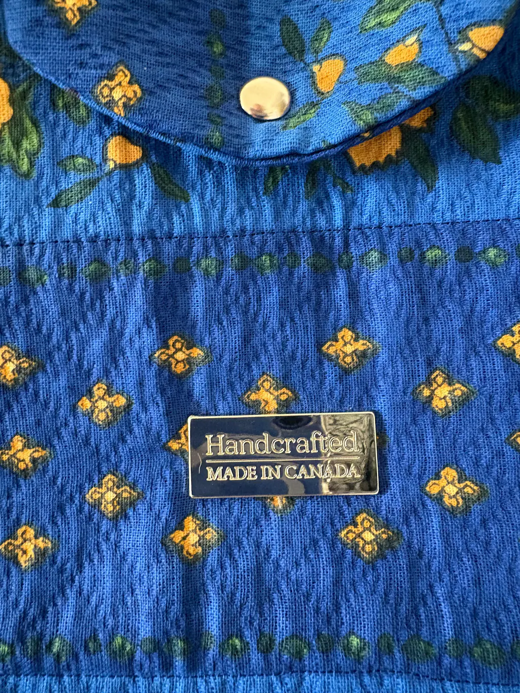 Metal Bag Label: "Handcrafted - Made in Canada"