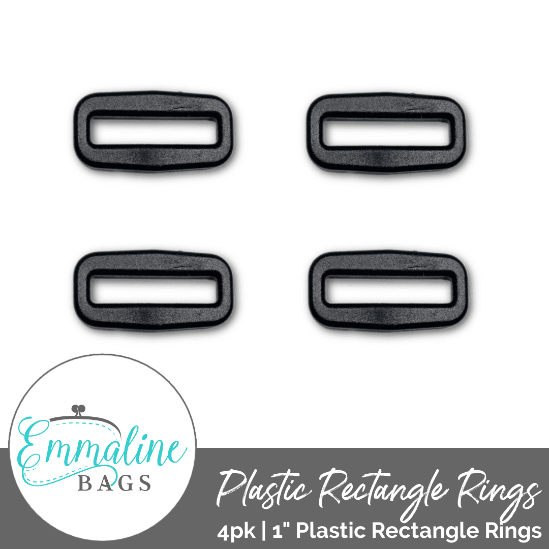 Four plastic 1" rectangle rings in a single pack—the unsung heroes of your bag-making adventures! At 1" wide, these lightweight wonders slip seamlessly into straps, handles, and hardware placements across totes, backpacks, and beyond.