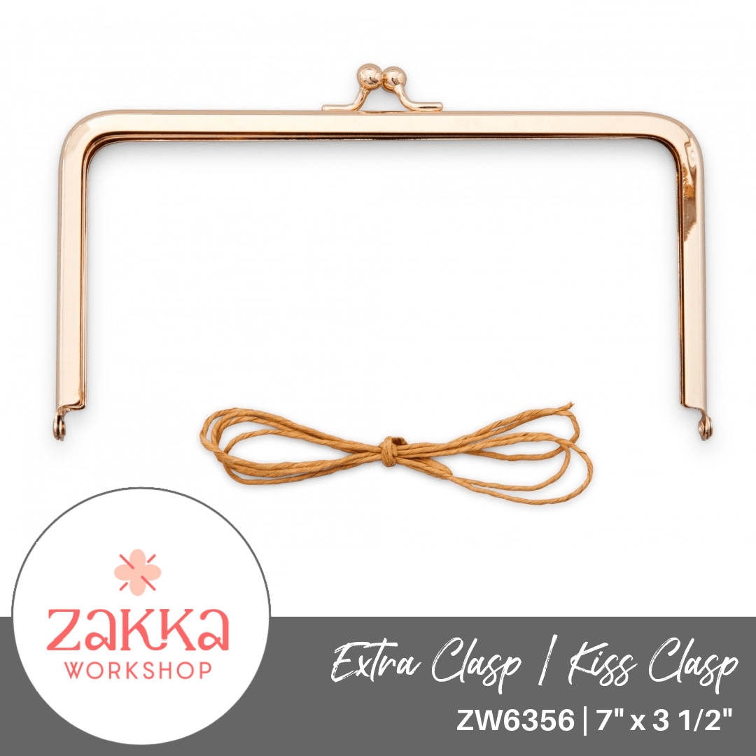 One 7in x 3.5in (18 x 9cm) rose gold clasp. Use this refill clasp for making multiples of the Kiss Clasp Sewing Box (#ZW2583) or design your own pattern. This is a glue-in clasp and includes paper string for easy installation.