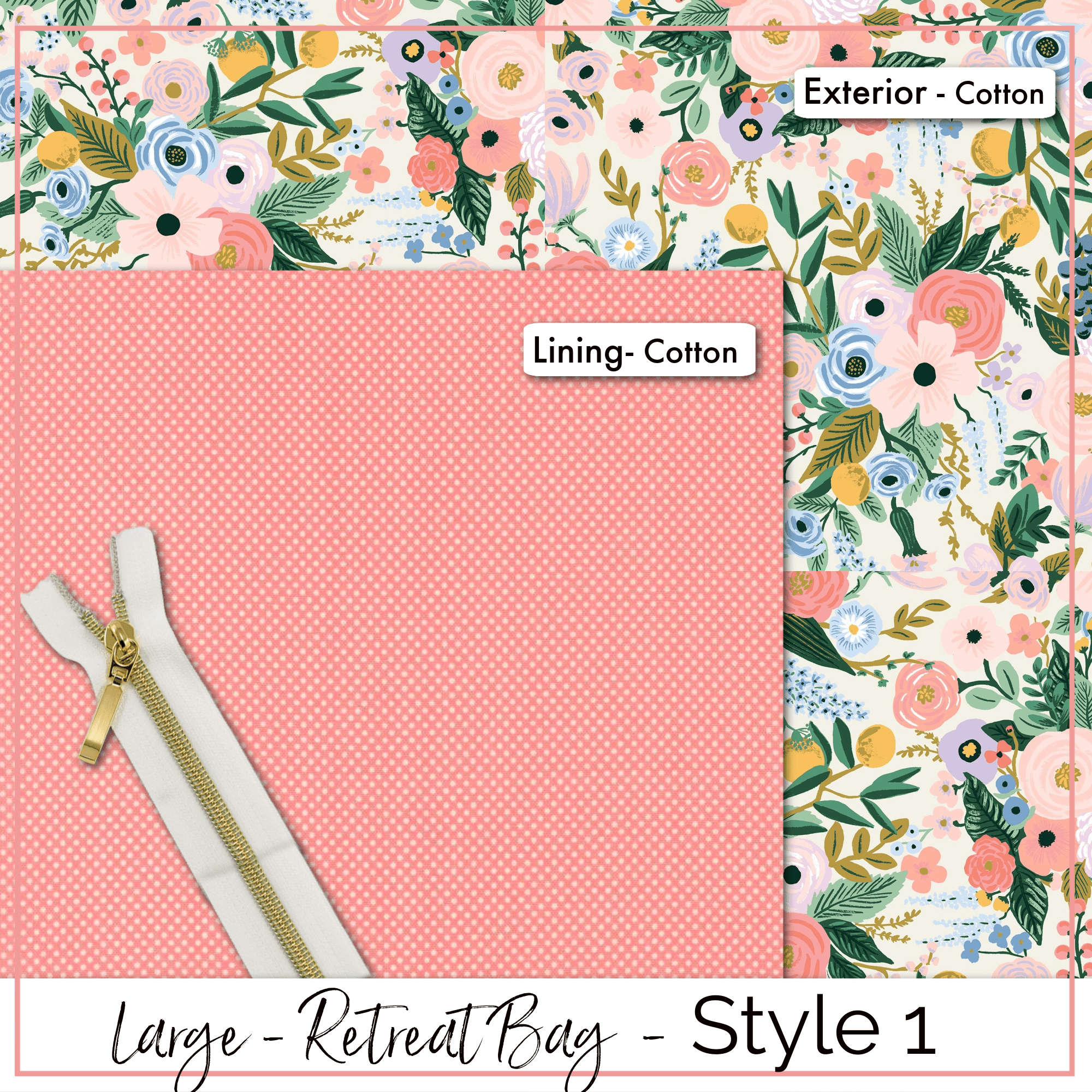A complete bag making kit to make a LARGE size COTTON Retreat Bag.