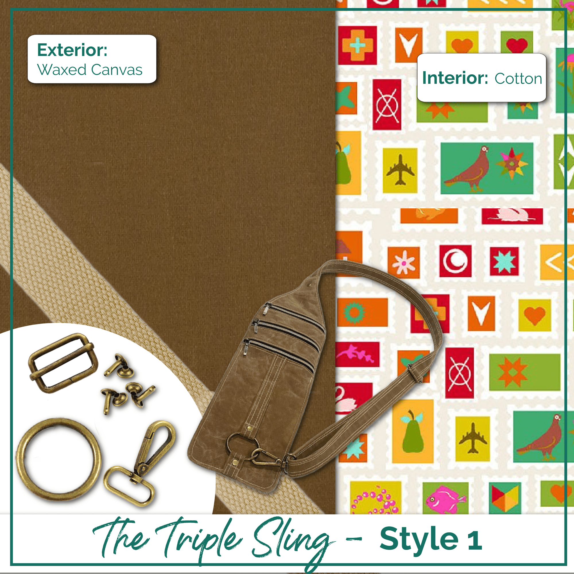 This listing is a for a complete bag making kit, including the pattern, to make The Triple Sling. Pattern by Adam & Jo from Country Cow Designs Ltd. You can read more about the pattern here.