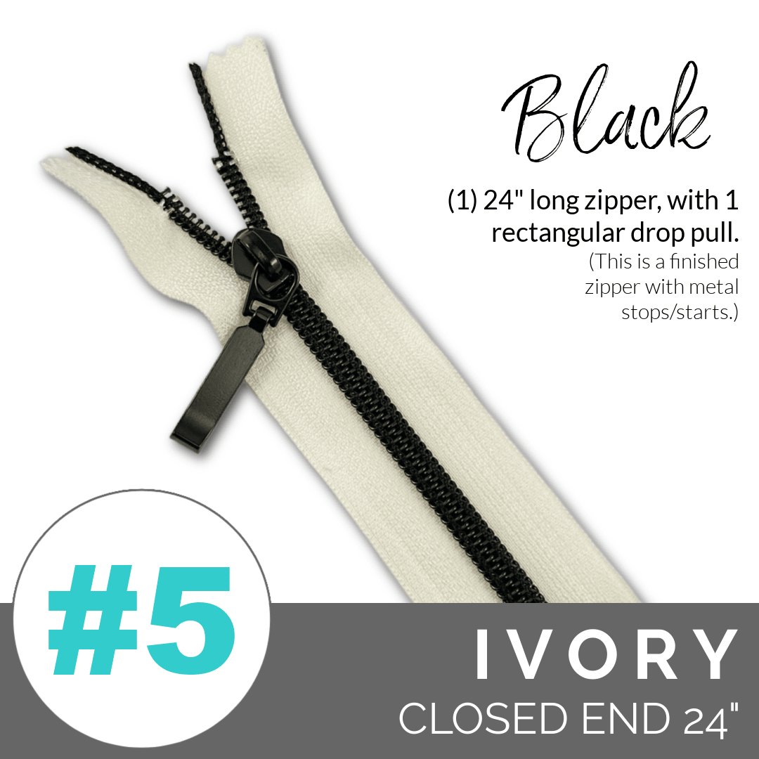 • 24" long usable zipper coil, plus 1" (25 mm) tape tails on each end for an overall length of 26".