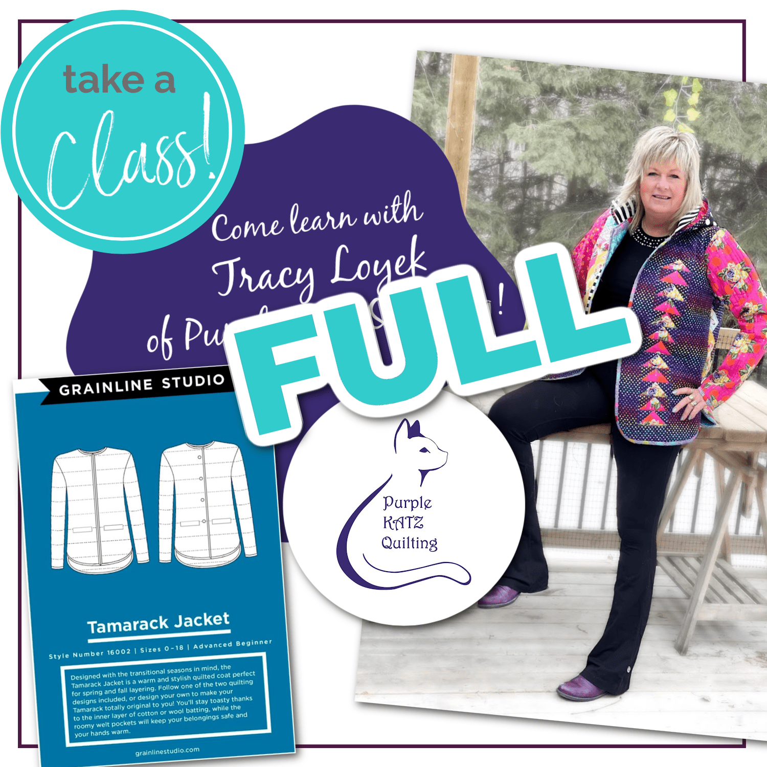 We’re so excited to welcome Tracy Loyek from Purple Katz Quilting for a special two-day sewing experience! In this hands-on workshop, you’ll create your very own Tamarack Jacket — a cozy, stylish quilted coat designed by Grainline Studio. This project is the perfect blend of garment sewing and quilting, and Tracy’s friendly, approachable teaching style will guide you through each step with confidence.