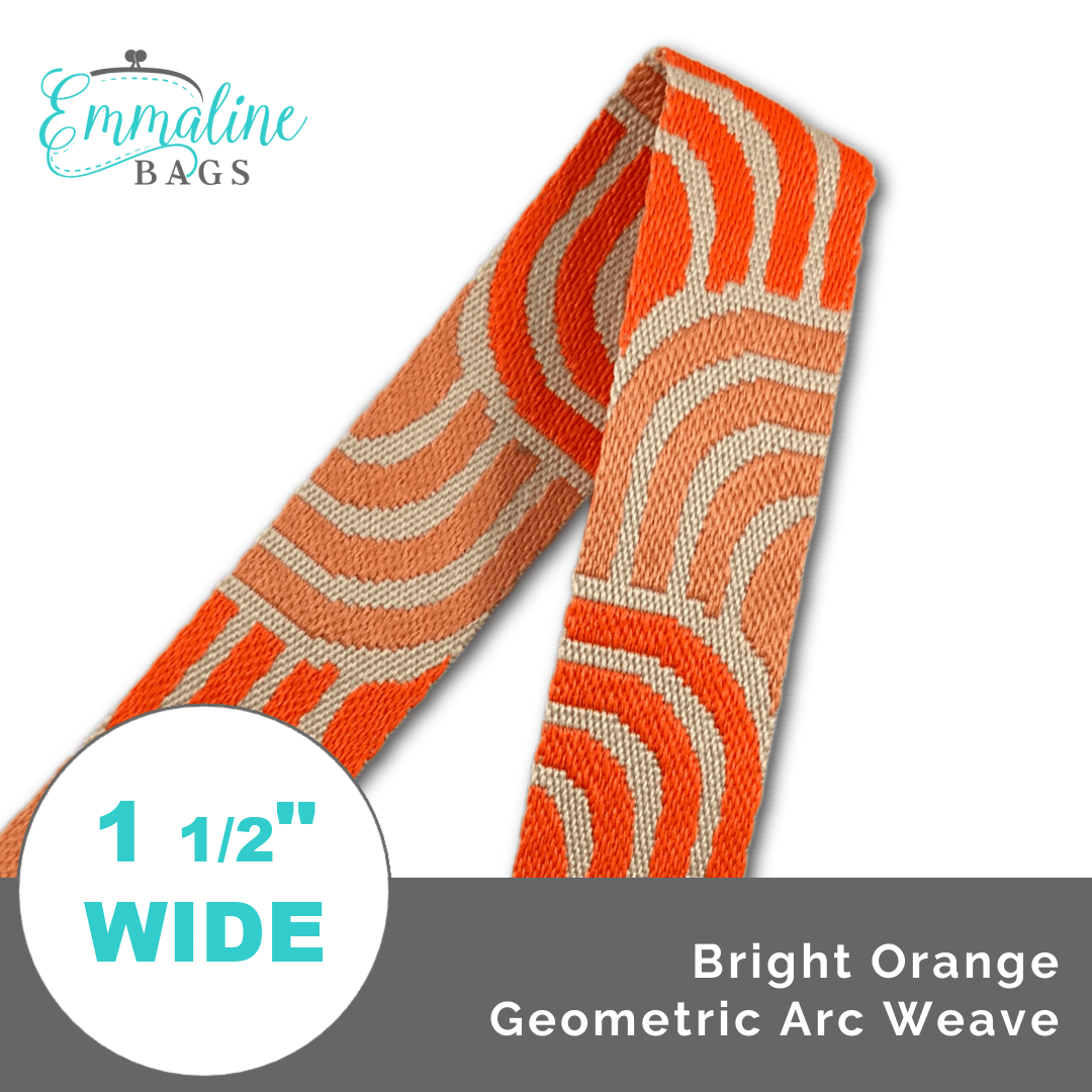 This vibrant orange webbing brings serious style to your bag-making projects with its eye-catching geometric arc design. The repeating curved bands dance across the surface in a playful rhythm, giving your creations an instantly modern vibe. At 1½ inches wide, it's the sweet spot for building robust straps, handles, and reinforced seams that won't quit. Soft enough to work with, tough enough to take a beating—this webbing flexes through real-world adventures. Perfect for totes, backpacks, and any project that demands both personality and durability.