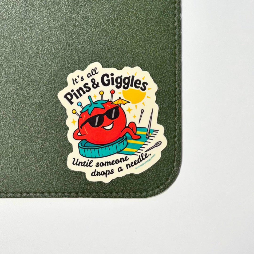 Its All Pins & Giggles... | Gloss Vinyl Sticker | Designed by Emmaline Bags