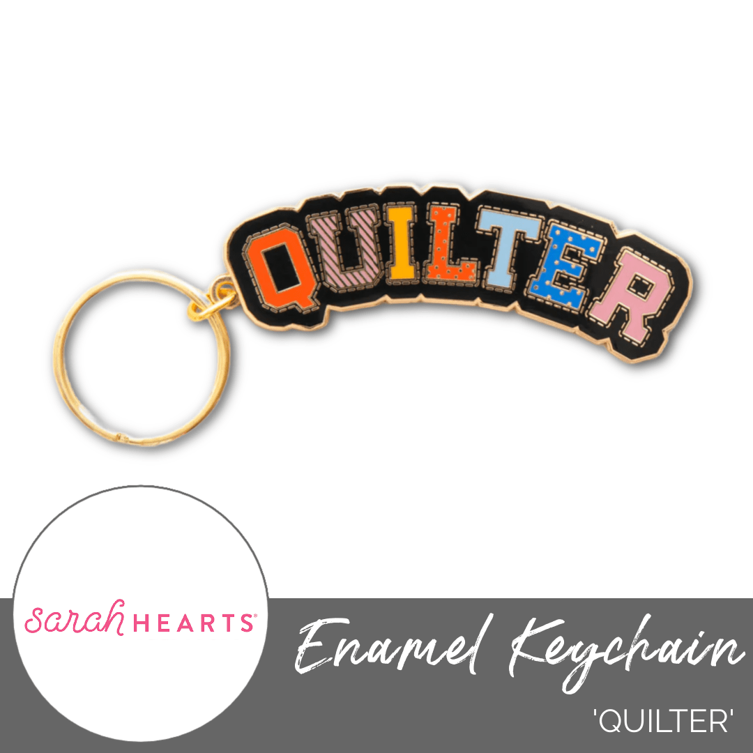 Add a splash of color and charm to your quilting gear with this playful Quilter Keychain. Featuring patch-style colorful letters outlined in elegant gold stitching, this enamel metal keychain doubles as a delightful bag charm. Perfect as a gift for quilters or a fun accessory to keep your keys and tools close at hand.