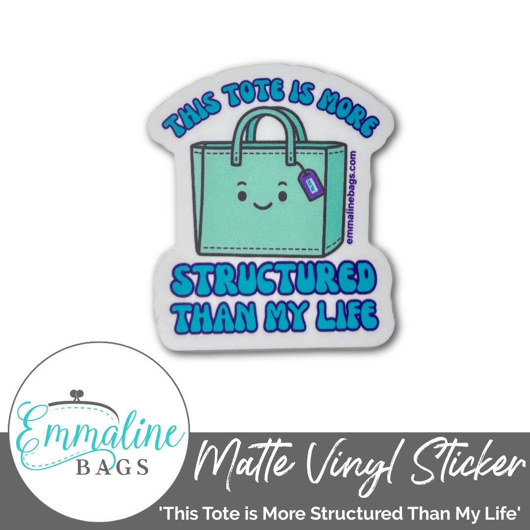 This Tote is More Structured Than My Life | Matte Vinyl Sticker | Designed by Emmaline Bags