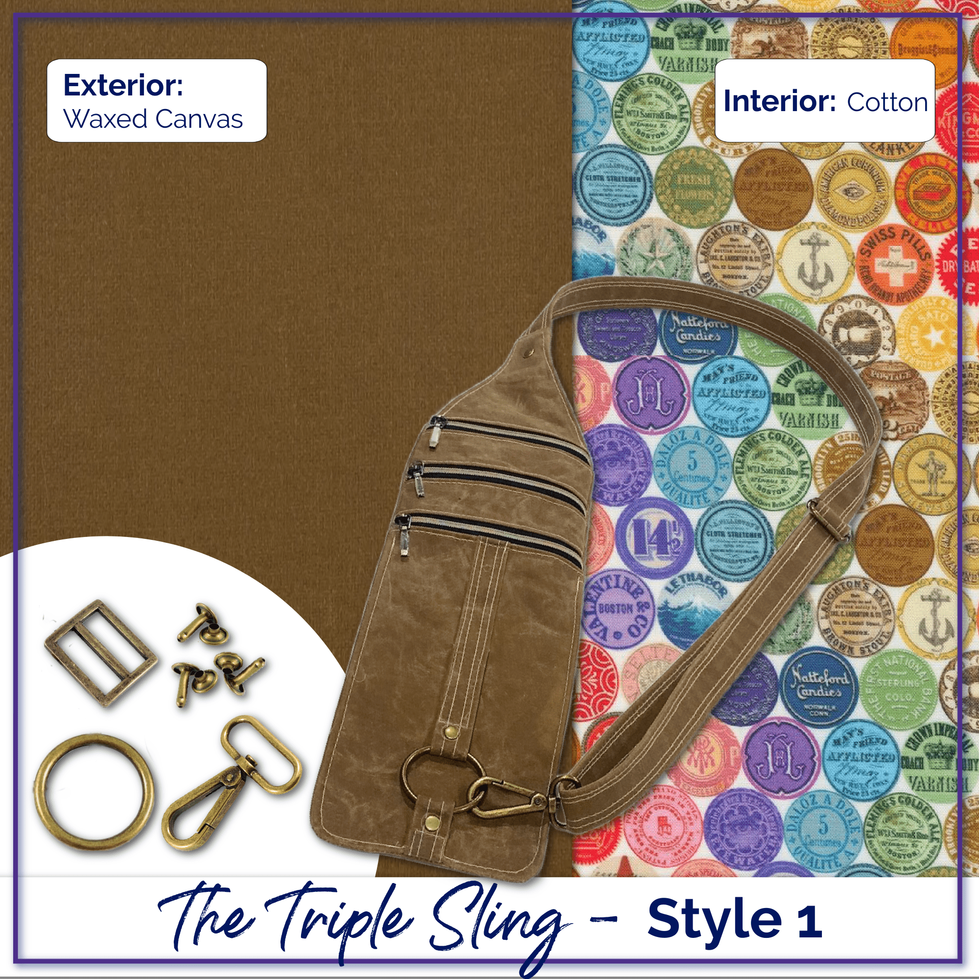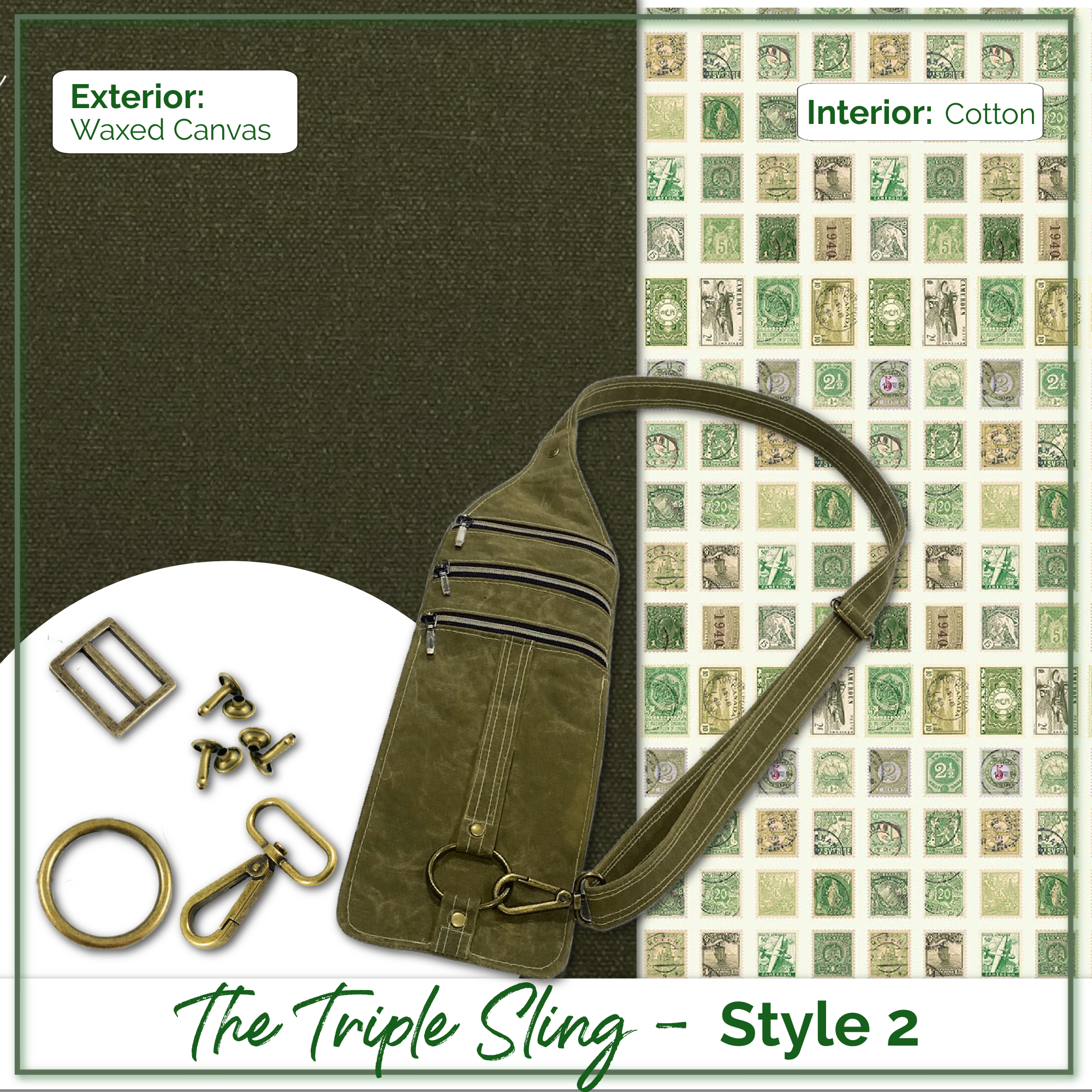 This listing is a for a complete bag making kit, including the pattern, to make The Triple Sling. Pattern by Adam & Jo from Country Cow Designs Ltd. You can read more about the pattern here.