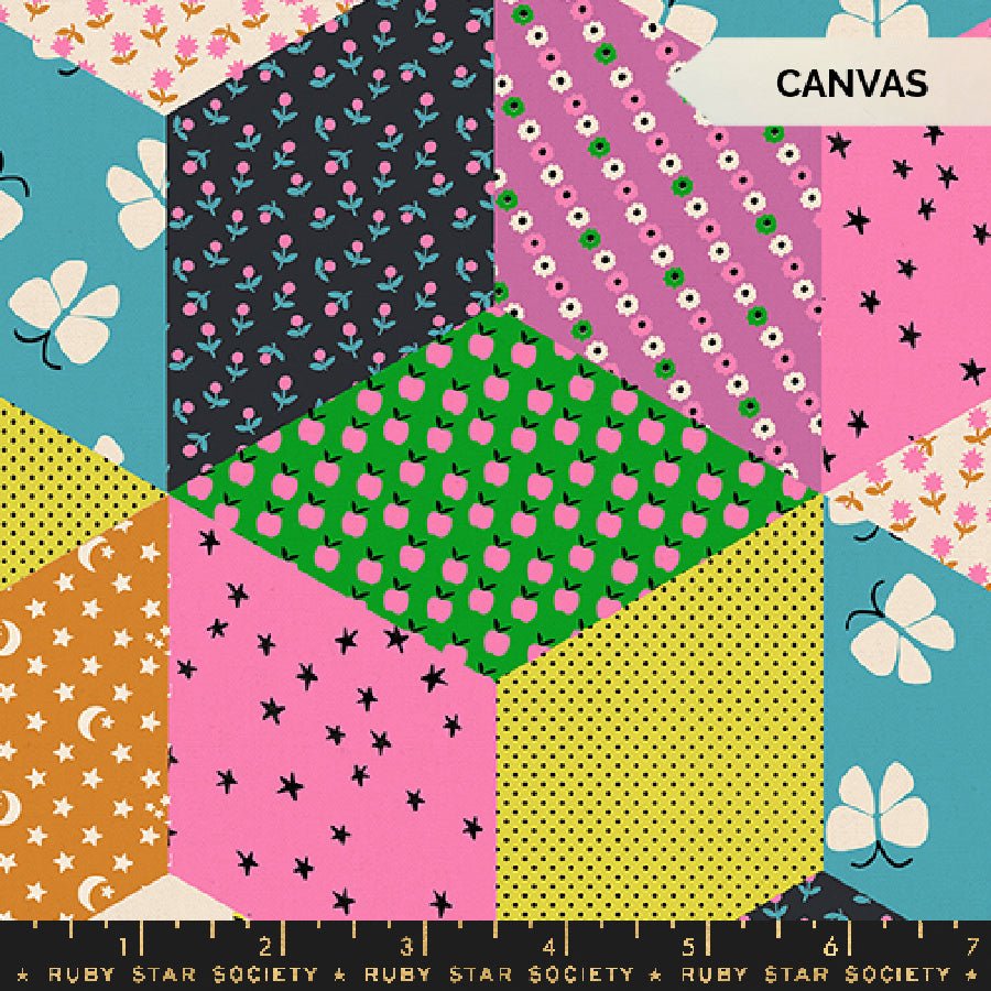 Citron Tumbling Blocks (Canvas) | Ooh Lucky Lucky by Ruby Star Society (1/4 Yard)