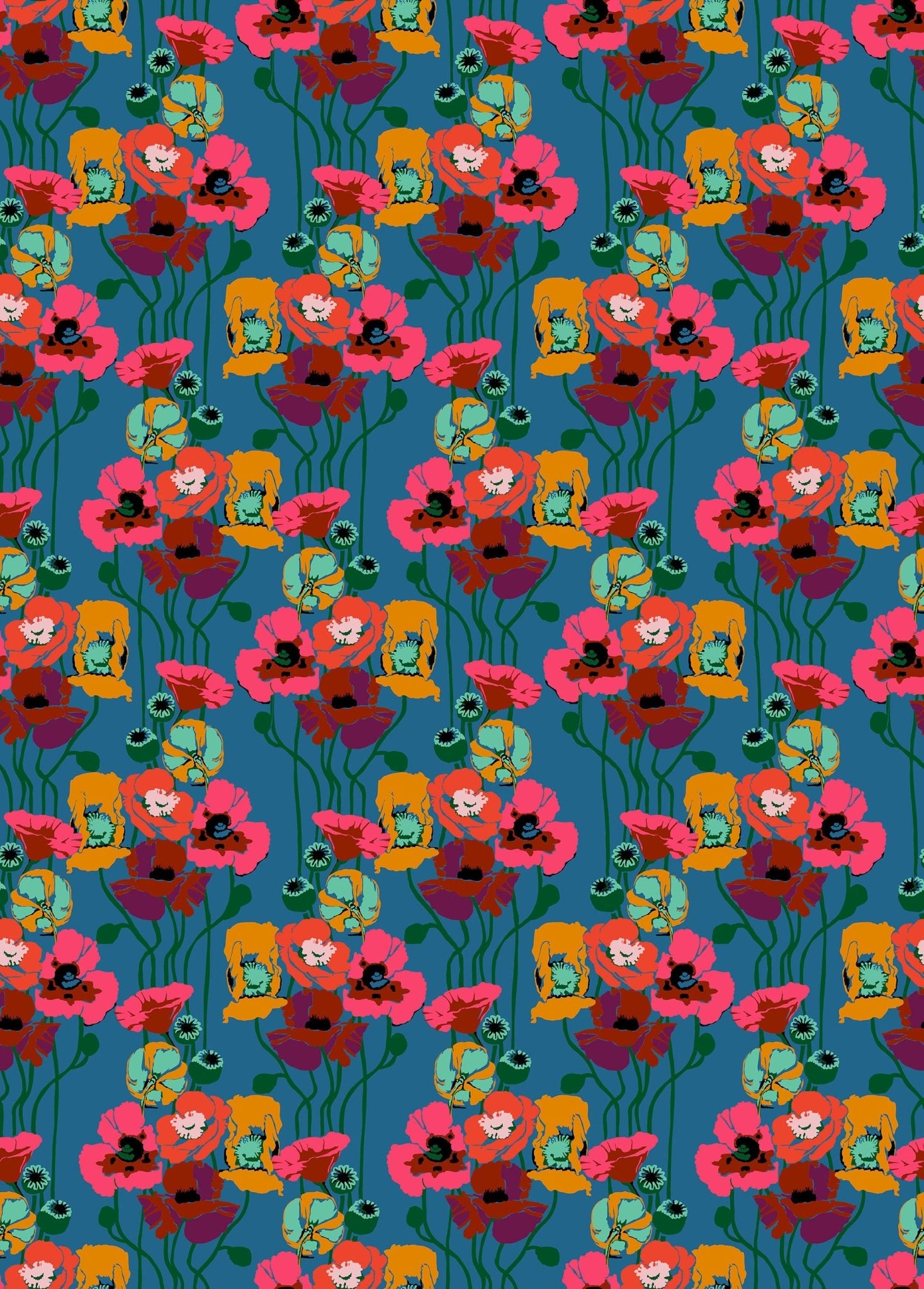 Paint Pouring Poppies | Overdressed by Anna Maria Parry (1/4 Yard)