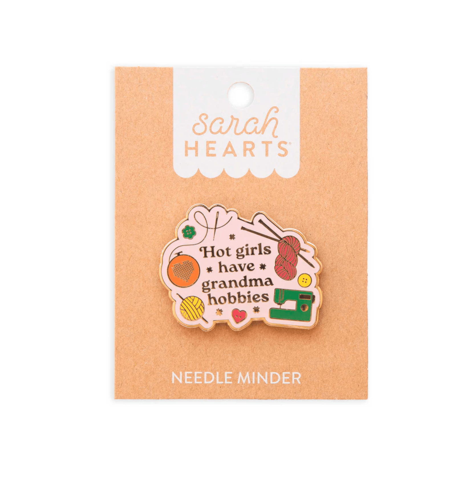 Celebrate your love of needlework with this witty enamel magnetic needle minder that declares "Hot Girls Have Grandma Hobbies." The strong magnetic hold keeps your needle exactly where you left it, so you can stitch without the frustration of hunting it down. Perfect for cross stitch, embroidery, quilting, and all your hand sewing adventures. A fun, functional accessory that proves crafting is always in style.