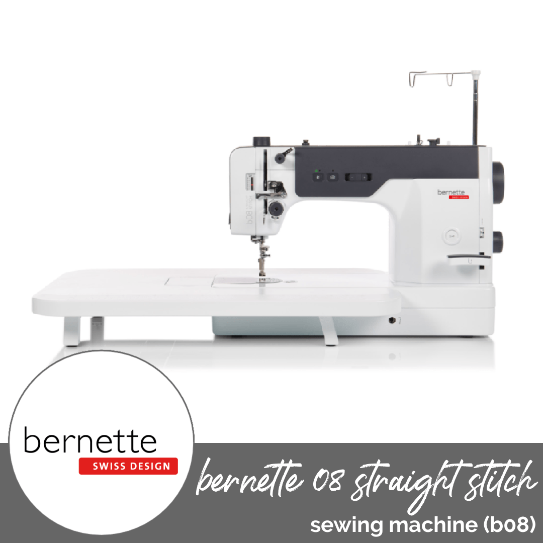 - The b08 Straight Stitch sewing machine focuses on the essentials – a beautiful straight seam. The powerful DC motor is an essential aspect for your sewing work and offers you high speed and efficiency. You can sew a wide range of fabrics, from delicate silks to heavy-duty denims and leather. The adjustable thread tension ensures that stitches remain strong, even when sewing multiple fabric layers.