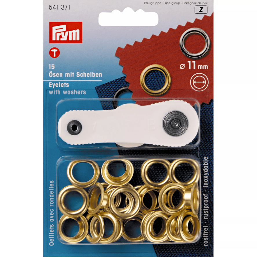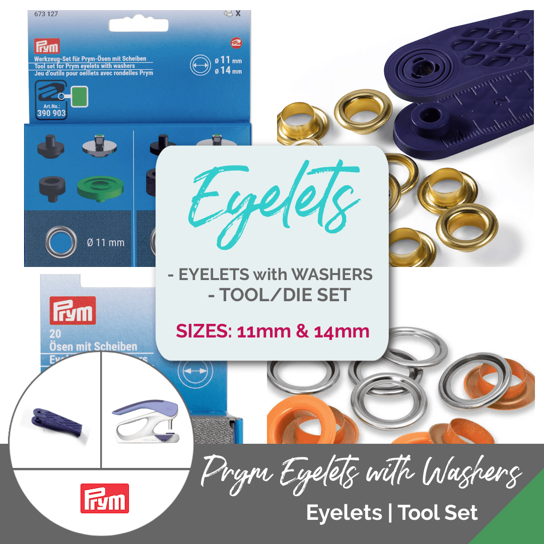 Prym’s classic eyelets with washers (ALSO CALLED GROMMETS) are versatile, durable and easy to install with either the included tools, or the Vario Creative tool.