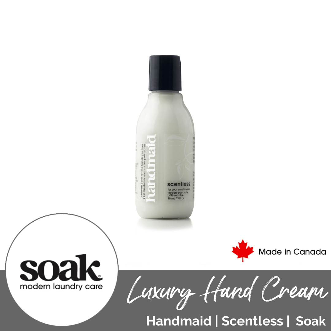 Aqua, Caprylic/Capric Triglyceride, Glycerin, Butyrospermum Parkii (Shea) Butter, Dimethicone, Cetyl Alcohol, C12-15 Alkyl Benzoate, Glyceryl Stearate, Peg-100 Stearate, Cetearyl alcohol, Ceteareth-20, Isopropyl Palmitate, Stearic Acid, Olea Europaea (Olive) Fruit Oil, parfum, Phenoxyethanol, DMDM Hydantoin, Petrolatum, Carbomer, Tocopheryl acetate, Retinyl Palmitate, Punica Granatun (Pomegranate) Extract, Vitis Vinifera (Grape) Seed Oil, Pinus Strobus (White Pine Bark) Extract, Camellia Sinensis (Green Tea) Leaf Extract, Panax Ginseng (Ginseng) Extract, Chamomilla Recutita (Matricaria) Flower Extract, Arctostaphylos Uva Ursi (Bearberry) Extract, Algae Extract, Echinacea Angustifolia (Coneflower) Extract, Glycyrrhiza Glabra (Licorice) Root Extract. All of our Handmaid formulations are the same, except for Scentless which does not include fragrance (parfum).