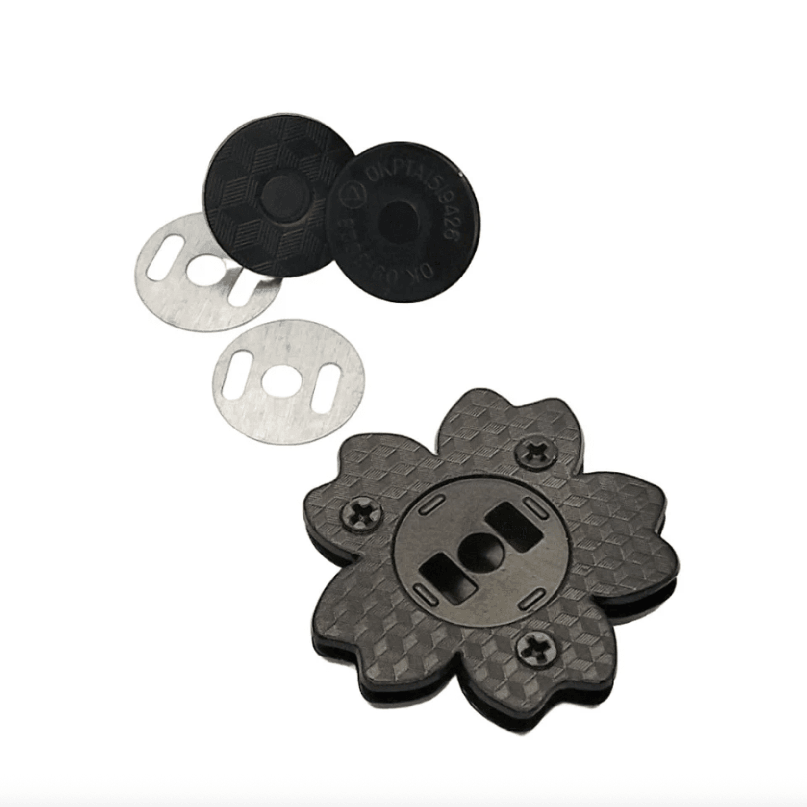 - Simply attach the female end snap on the bag front using the provided washer, using the same technique as you would for any magnetic snap.