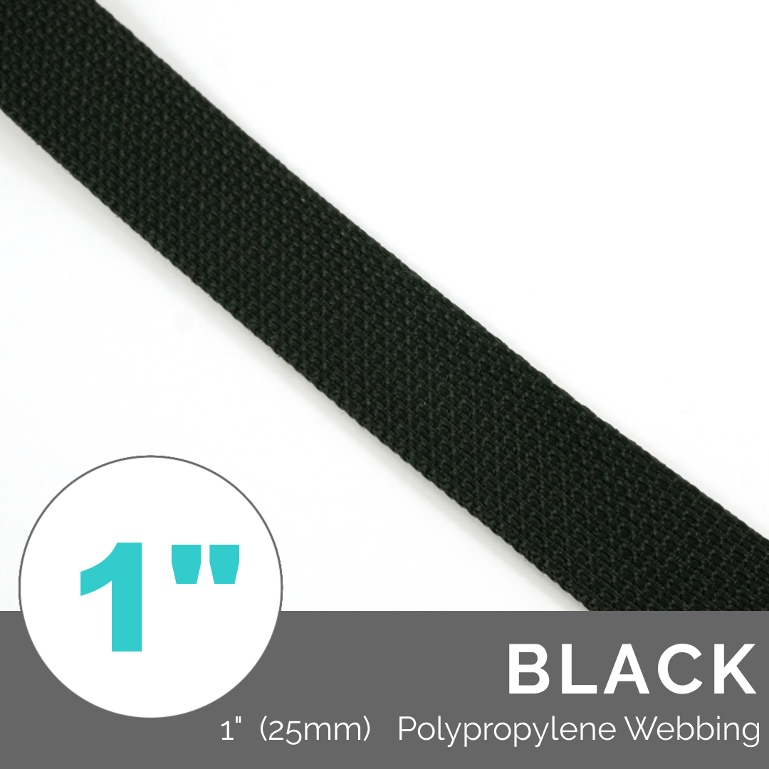 (Polypropylene) Strap Webbing **1" (25mm)** (Per 1 Yard) - Black