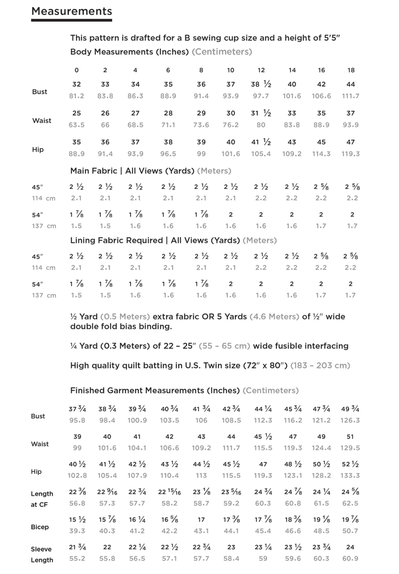 Main & Lining Fabrics (See below Chart for fabric requirements) Light to mid-weight cottons, linens, chambrays, and blends work well for this jacket. Since the fabric will be doubled and quilted to a batting avoid anything too heavy as the jacket may become excessively stiff. Extra fabric may be needed to match plaids, stripes, and directional prints.