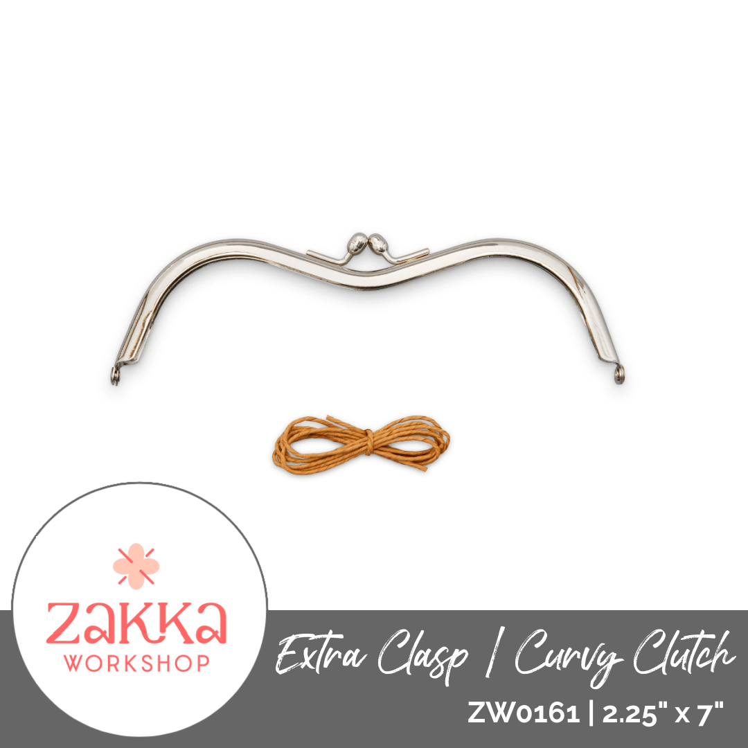 This silver metal clasp is designed to be used with the Curvy Clutch pattern (Item #ZW2286). The clasp measures 2 ¼" x 7" (5.5 x 18 cm). Also includes paper string used for installation.